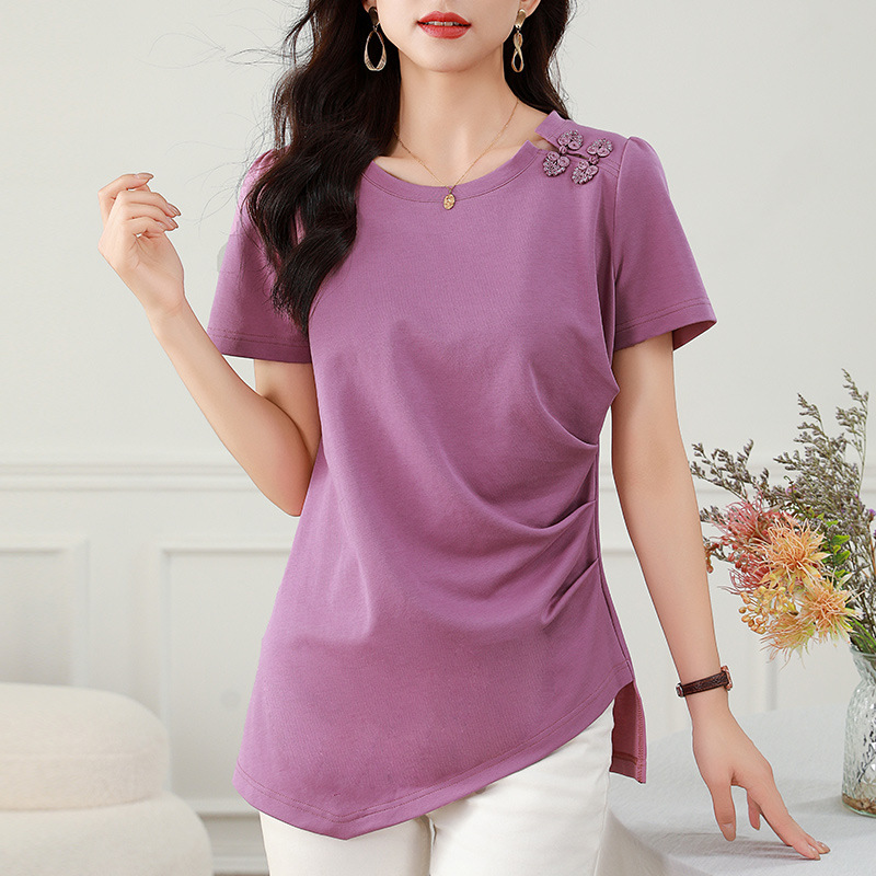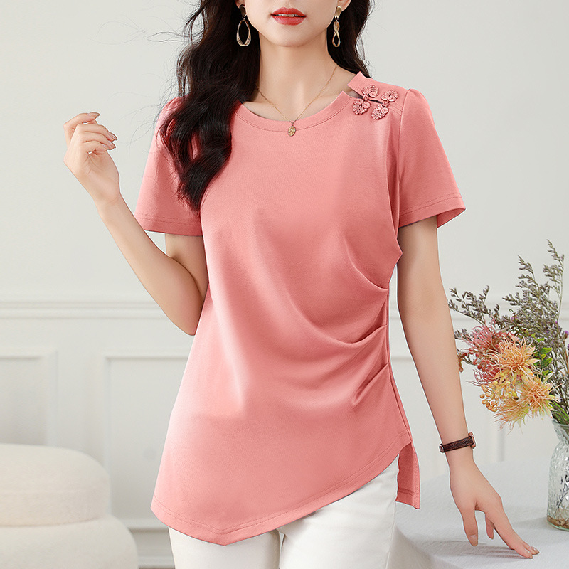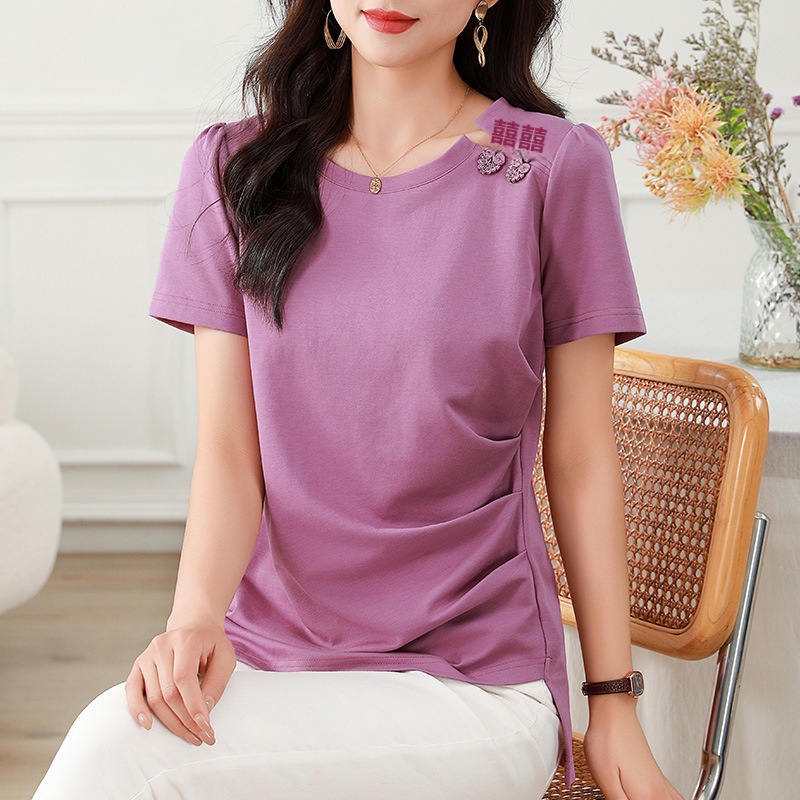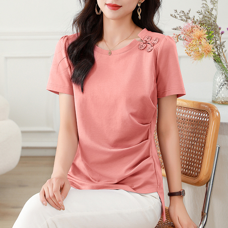 新中式盤扣點綴衣身 不規則下擺顯設計感 淺色系調溫柔雅致 日常穿著清爽又有韻味